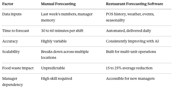 For years, forecasting meant a manager looking at last Tuesday’s sales and making their best guess. That approach works until it doesn’t, and in a business where food cost and labor cost are your two biggest line items, “best guess” is an expensive habit.