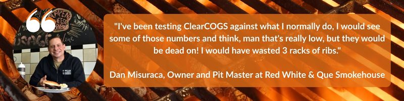 “I’ve been testing ClearCOGS against what I normally do,” Dan shares. “I would see some of those numbers and think, man that’s really low, but they would be dead on! I would have wasted 3 racks of ribs.“